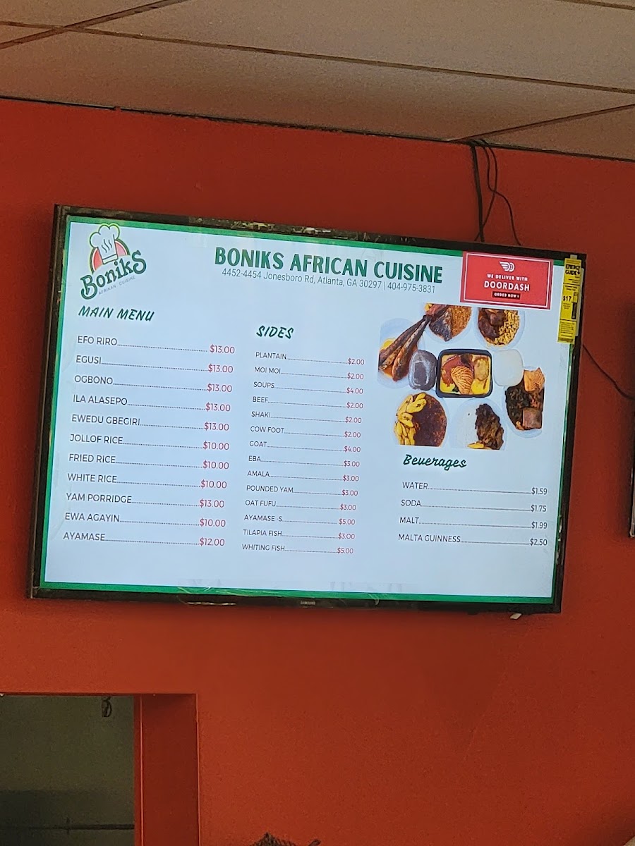 Boniks African Cuisine - Nigerian Restaurant Menu (2025 Update)